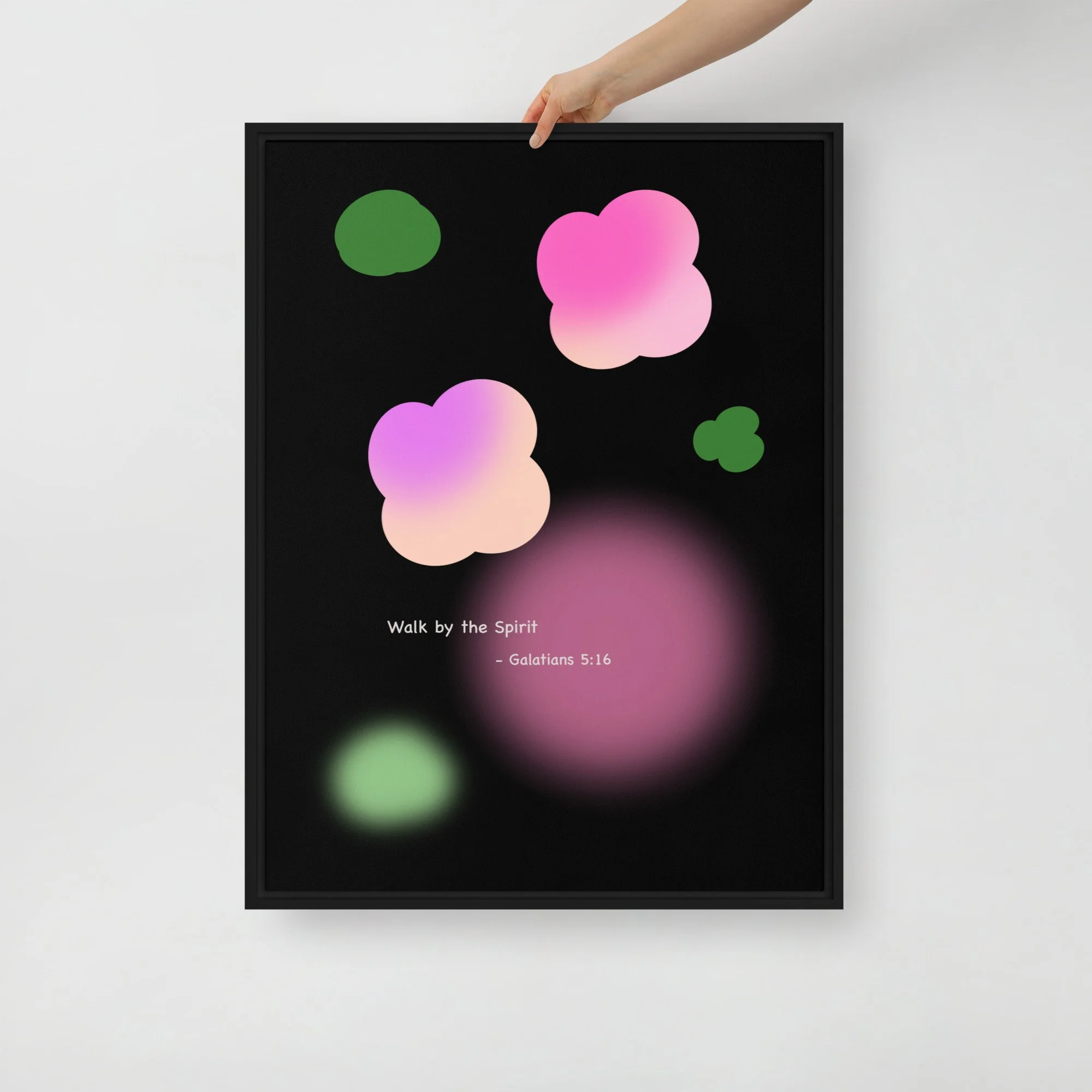 - The framed canvases with brown and black frames have a black inside around the canvas, and the canvases with white frames have a white inside around the canvas.